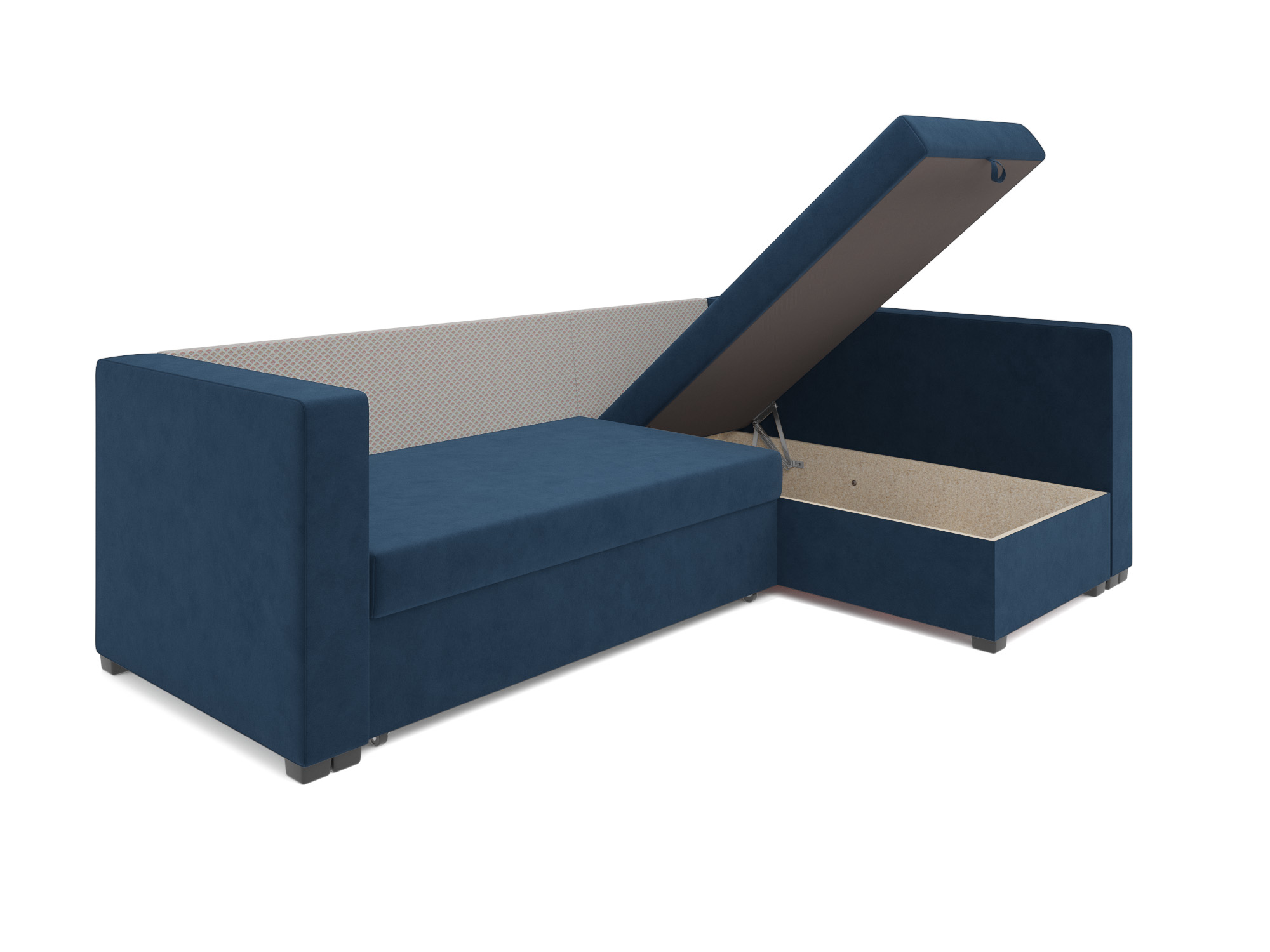 Наличие бельевого ящика обеспечивает дополнительное место для хранения вещей под сиденьем углового дивана.