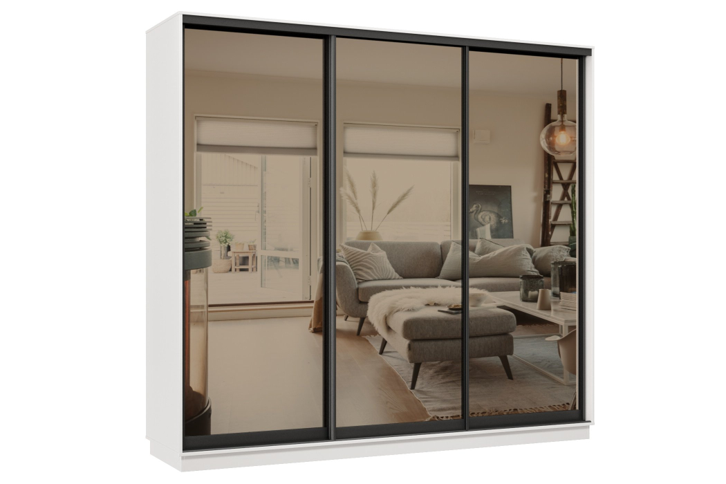 Отзывы о Столплит Шкаф-купе Премьер 34 (01ЗБ;01ЗБ;01ЗБ) фасады зеркало бронза/трёхдверный/Профиль чёрный муар Белый