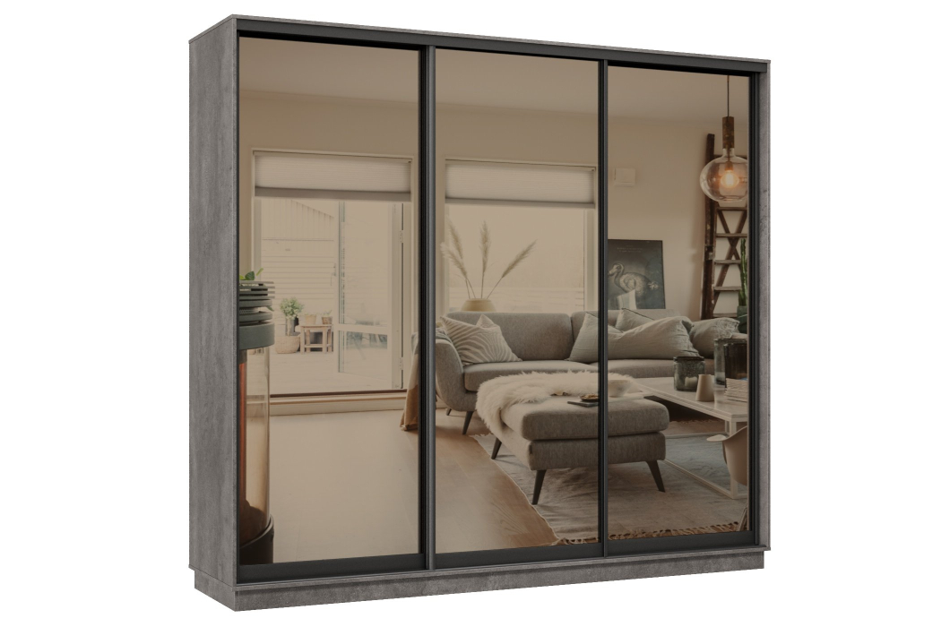 Отзывы о Столплит Шкаф-купе Премьер 34 (01ЗБ;01ЗБ;01ЗБ) фасады зеркало бронза/трёхдверный/Профиль чёрный муар Бетон