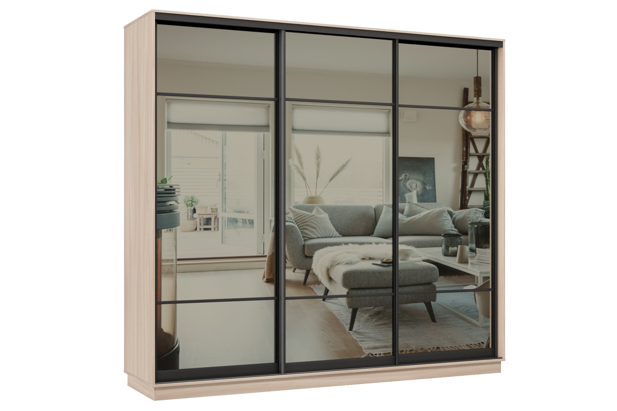 Отзывы о Столплит Шкаф-купе Премьер 57 (11ЗГ;11ЗГ;11ЗГ) фасады зеркало графит/трёхдверный/Профиль чёрный муар Ясень шимо светлый