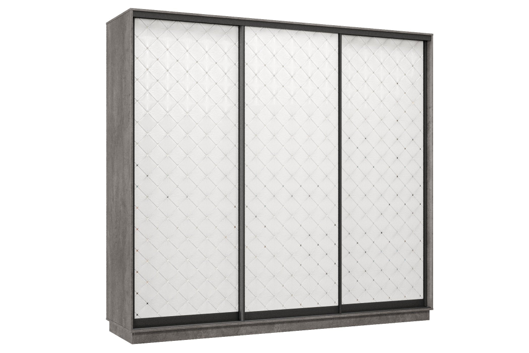 Отзывы о Столплит Шкаф-купе Премьер 60 (01РБ;01РБ;01РБ) фасады ромб белый/трёхдверный/Профиль чёрный муар Бетон