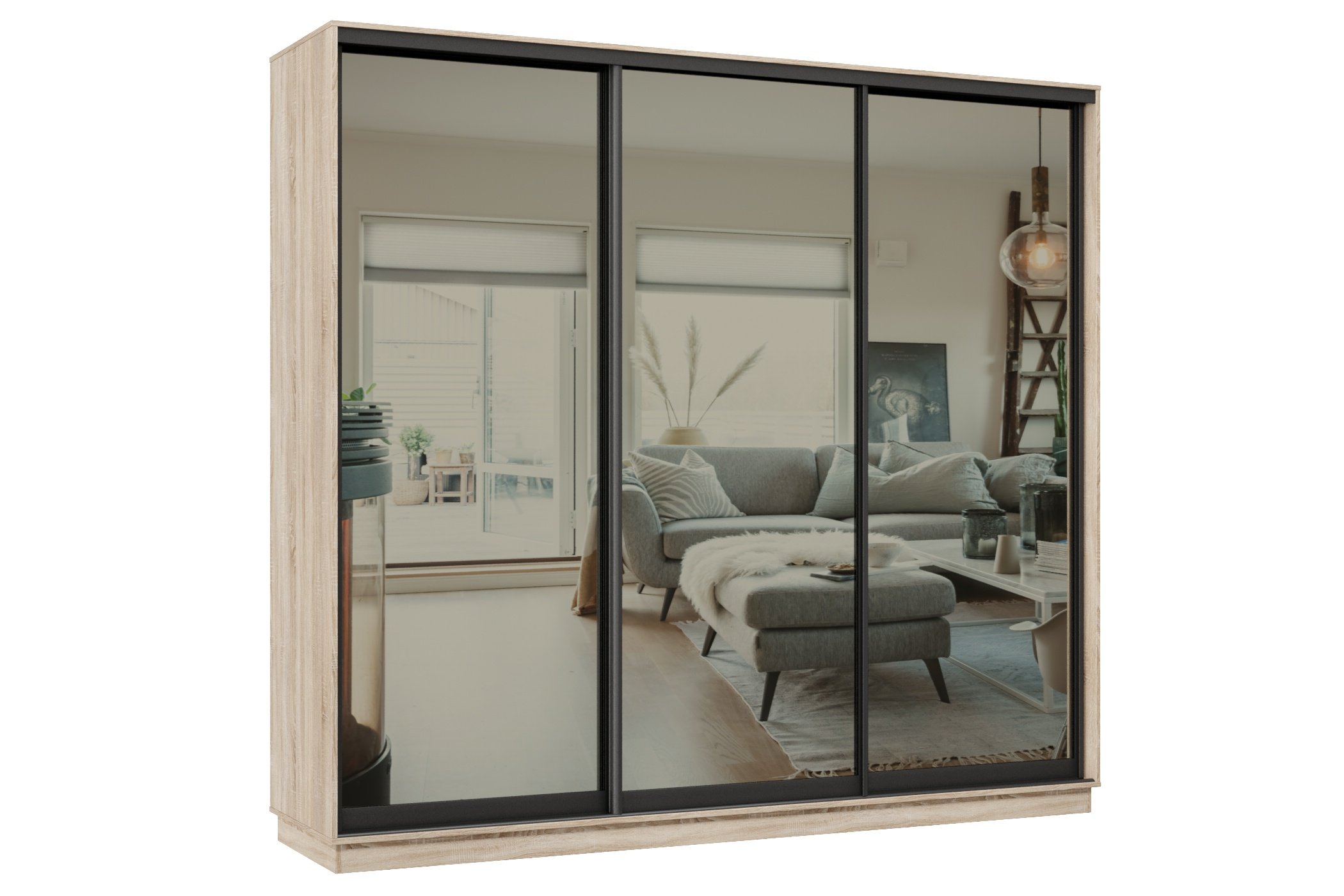 Отзывы о Столплит Шкаф-купе Премьер 60 (01ЗГ;01ЗГ;01ЗГ) фасады зеркало графит/трёхдверный/Профиль чёрный муар Дуб сонома