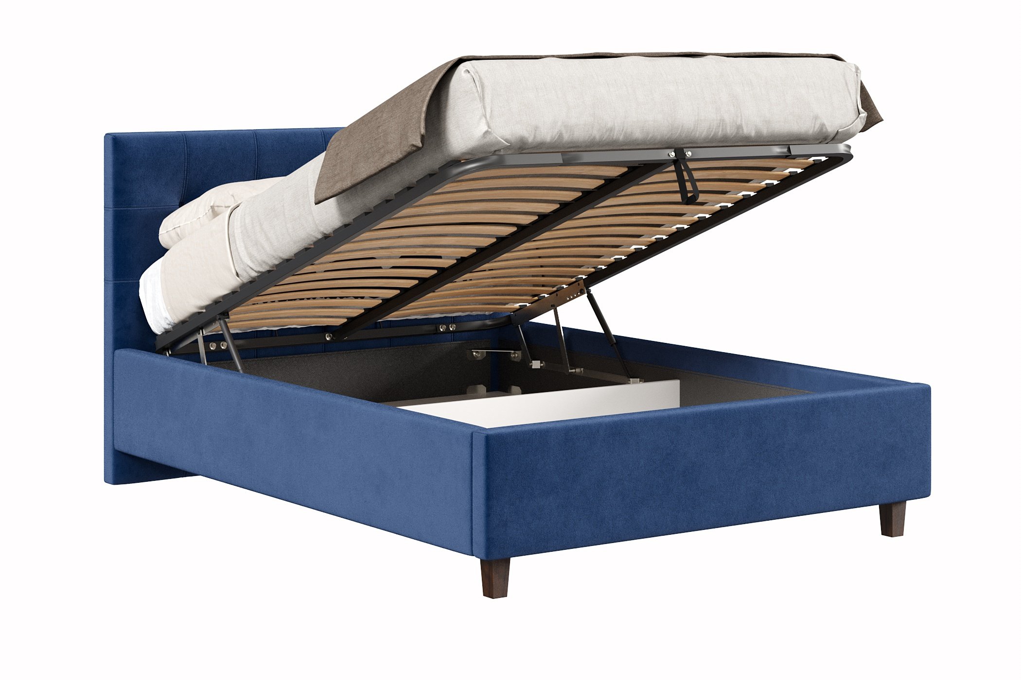Кровать имеет нишу для хранения разных вещей, это очень удобно, если пространство в комнате не дает возможность поставить дополнительные шкафчики, либо полки.
