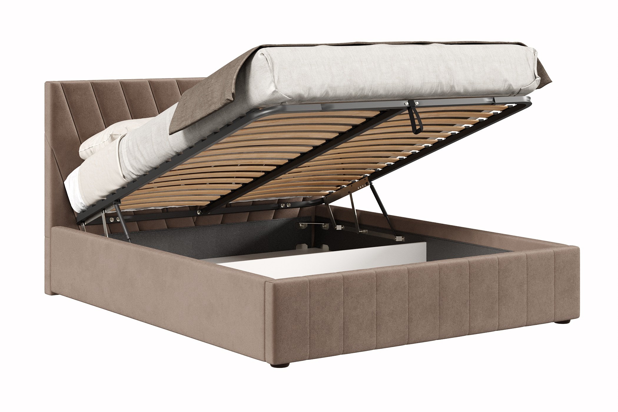 Кровать имеет нишу для хранения разных вещей, это очень удобно, если пространство в комнате не дает возможность поставить дополнительные шкафчики, либо полки.