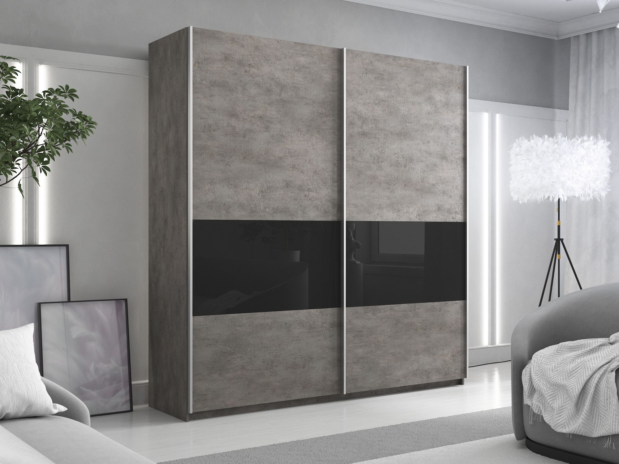 Отзывы о Столплит Шкаф-купе Прайм 2х дверный ДСП/Стекло черное 160х57х230 Бетон