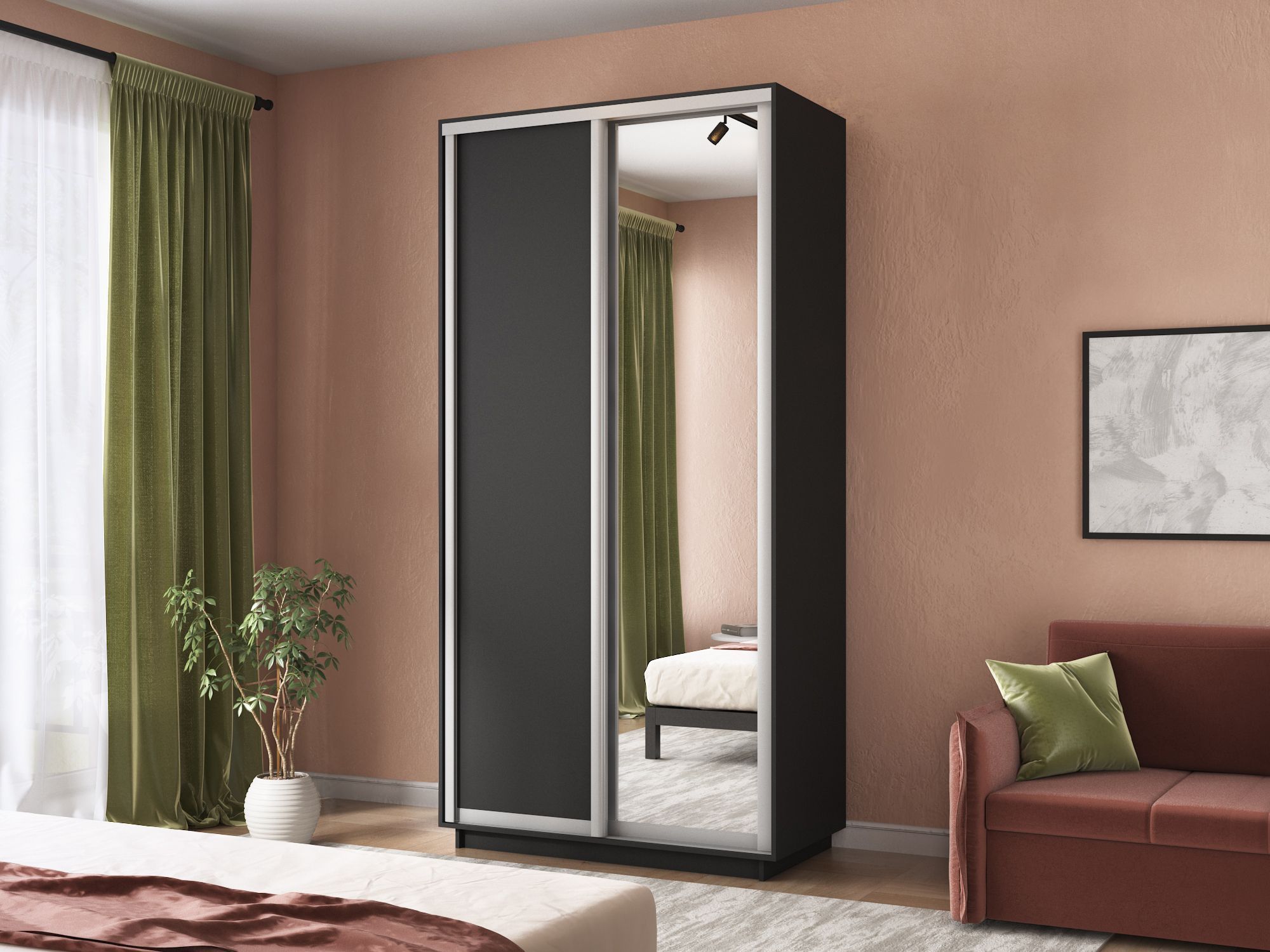 Отзывы о Столплит Шкаф-купе Экспресс Хит 2х дверный ДСП/Зеркало 120х60х220 Темно-серый