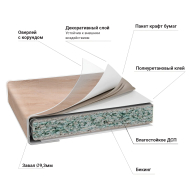 Основа – влагостойкое ДСП, толщиной 38 мм. Пластик толщиной 04-0,5 мм. Задний срез обработан меламиновой кромкой. Низ закрыт защитным покрытием бэкинг, которое защищает ДСП от влаги. Столешница оснащена уникальным каплесборником (специальная силиконовая накладка, монтируемая в паз на передней части столешницы снизу). Препятствует стеканию капель воды со столешницы на фасады и встроенную техник, расположен под углом 12,7 гр. Произведена на полностью автоматизированном немецком оборудовании. Поставляется в упаковке.
