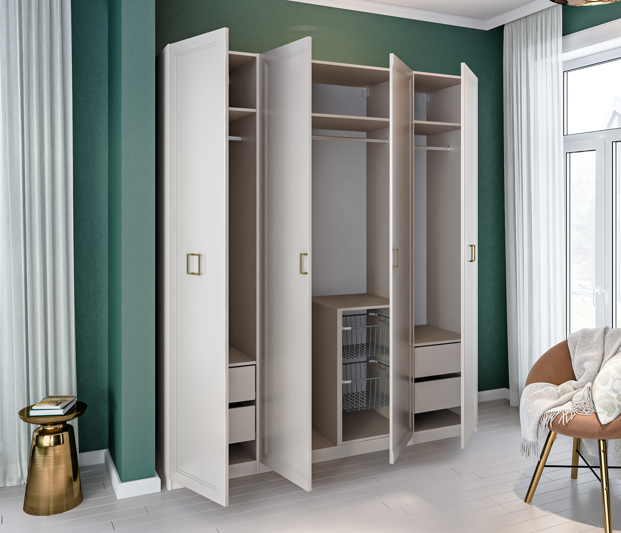 Шкаф Макс 4х дверный с фасадами Ассоль Кашемир серый (Кашемир серый)