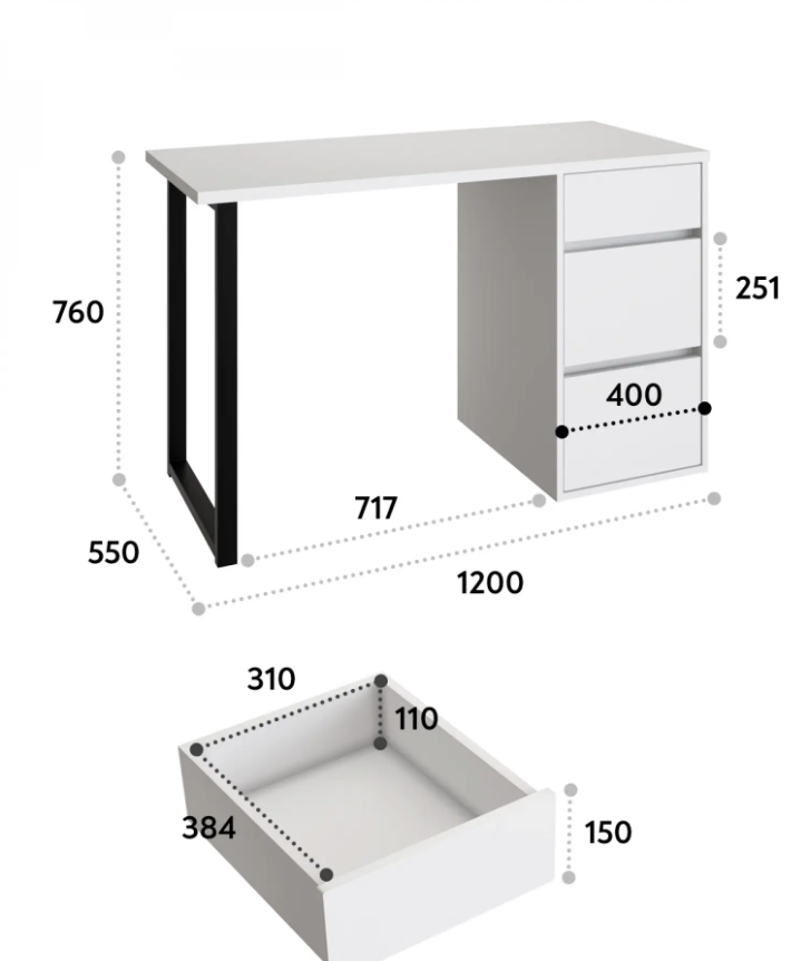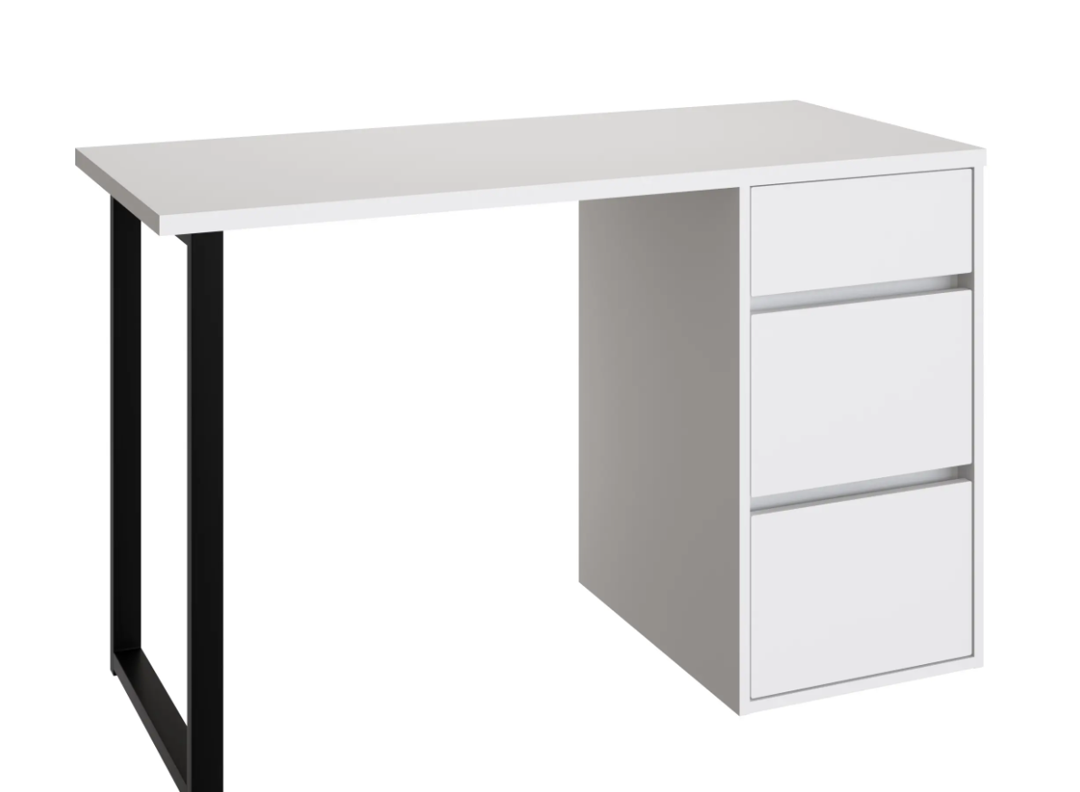 Стол письменный С-401 позволит создать комфортное и стильное рабочее пространство в офисе или домашнем кабинете. Стол С-401 можно использовать в качестве маникюрного стола. Стол имеет прочную стальную опору и тумбу с тремя выдвижными ящиками. Столешница изготовлена из ЛДСП 25 мм. Стол может быть собран в зеркальном варианте «правым» или «левым». Фурнитура: телескопический направляющие полного выдвижения без доводчиков, опора металл.