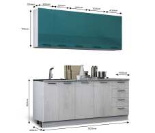Кухня Лагуна 1,5 м К2 Морская волна/Дуб седой МДФ Код R0000304935