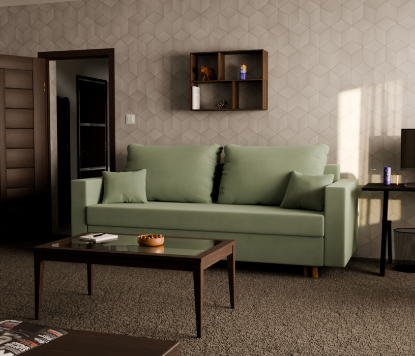 Диван оснащен съемными подушками, что позволяет легко адаптировать его под ваши потребности. Его высота и глубина обеспечивают комфортную посадку, а спальная зона позволяет разместить до двух человек.