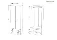Штанга внутри шкафа идеально подойдёт для вещей, хранение которых возможно только на плечиках. Два выдвижных ящика помогут вам дополнительно разместить небольшие вещи, белье или аксессуары.